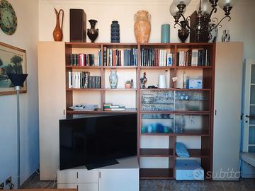 Si vende bella parete soggiorno seminuova con vetrina di cristallo e porta televisione e cassetti, due ante laterali chiuse di cm 45, proveniente da mobilificio insieme tavolo e sedie. Aiutiamo a portare i pezzi per il trasporto su strada, che sarà a carico dell'acquirente; si trova al quarto piano con ascensore. dimensioni lunghezza cm 330 altezza cm 240
