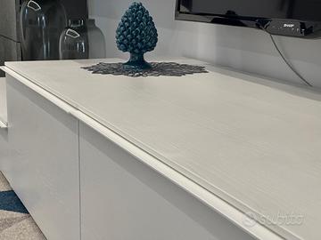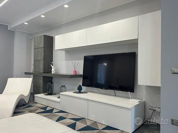 Vendo come nuova parete soggiorno moderna ed elegante. Completamente in legno di qualità e di colore bianco e grigio ( marca Mobilgam) Le misure sono: L 4,47 P mensola 45 Mobile terra 62 Mobile sopra 36 Acquistato a euro 4.300€