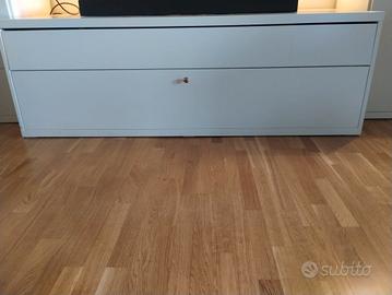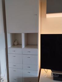 vendesi parete soggiorno bianco laccato comprensiva di cassettiera, mobile TV e colonna vetrina con luce interna. ( esclusa televisione e pensile centrale). misure: altezza 2,20