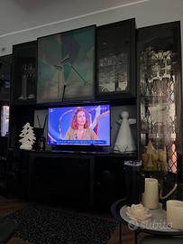 Parete soggiorno, con vetro di Murano scorrevole Tre cassetti e due ante Due vetri e lunghe e due piccole laterali al vetro di Murano