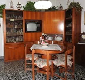 Parete soggiorno ad angolo classica con vetrine, mensole e porta tv. Mobile da salotto e cucina con tavolo cucina allungabile. Divano. Già smontato pronto da caricare (strada larga, piano terra). Trasporto a carico dell'acquirente. Rispondo anche su whatsapp al 3471779878