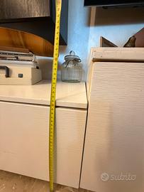 * n. 2 mobili bianchi a basamento uno con n. 2 cassettoni estraibili (misure cm. 166x60 h. 31cm.) e l’altro con 1 cassettone estraibile ed un vano più piccolo con porta battente (misure cm. 166x60 h. 41 cm.)