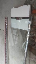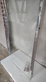 sopra vasca in cristallo sp. 1 cm - fissa - dimensioni h150 larghezza 40. - con telaio in acciaio lucido - marca Calibe - la parete è fissa - non bascula.