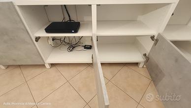 vendesi parete TV attrezzata tenuta in ottimo stato di conservazione,i pensili della parte superiore sopra la TV sono già stati smontati e imballati come da foto.. lunghezza 240cm.. prezzo non trattabile.. grazie
