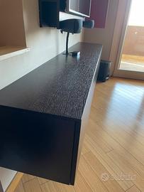 Parete attrezzata porta tv composta da una base in wengé sospesa con 3 ante a ribalta e apertura push-pull completa di buchi passacavi, N. 3 moduli contenitore 1 verticale e 2 orizzontali ( come in foto) di color rosso con apertura push-pull e mensole interne in vetro, per un tocco di colore al vostro soggiorno, in aggiunta un pannello porta tv ( la tv della foto e’ un 50 pollici quindi puo’ andar bene fino a tv 55 pollici) in wengé con impianto di retroilluminazione attivabile tramite interrutore laterale e 6 vani laterali ideale per Riporre la Vostra musica o i vostri giochi, il tutto in ottime condizioni. Dimensioni: Base in wengé: L217xP40/A37 cm Moduli contenitori Rossi: Verticale 109x36 profondita 40 cm Orizzontali 96x36 profondita 40 cm Panello porta tv: 114x81x14 Causa trasloco, vendo vari arredi in zona settimo milanese (Milano), alcuni disponibili subito altri dalla seconda settimana di febbraio 2026, questo in particolare sarebbe disponibile subito . Ideale per chi cerca un buon affare o vuole arredare casa ad un giusto prezzo. Tutti gli Oggetti sono in ottime condizioni, se interessati visitate gli altri annunci del mio profilo o contattatemi. Se state leggendo questo annuncio significa che l’oggetto e’ Ancora disponibile. Solo ritiro a mano presso la mia abitazione previo accordi telefonici, sara’ mia premura farla trovare con i moduli già smontati pronti per il trasporto che rimane a carico dell’acquirente. Rimango a disposizione per ulteriori info. Note: tutto quello non riportato in descrizione nn e’ incluso nell’offerta.