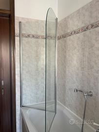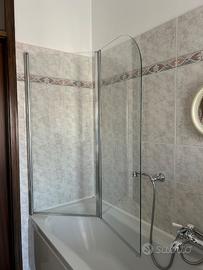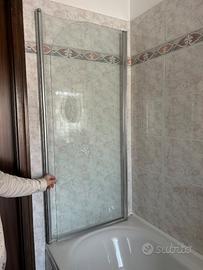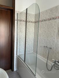 Vendo per dismissione vasca da bagno: parete vasca a 2 ante, pieghevole. Marca Samo. 2 ante ripiegabili sia verso l’interno sia verso l’esterno. Pannelli in vetro temperato (cristallo) di spessore 8 mm. Profili metallici, quello inferiore con guarnizione per evitare perdite d’acqua. Anta terminale sagomata. Misure: altezza 140 cm, lunghezza 120 cm. Reversibile. Acquistato, montato e mai usato. Posizione: Rovigo Valore da nuovo 500-800 euro