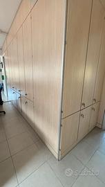 pareti attrezzate lungh. totale 4,20 mt con ante apertura 180° complete di ripiani in metallo e chiusura con serratura
