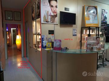 Elegante composizione di pannellatura mobile per ufficio e negozio colore champagne composto da: