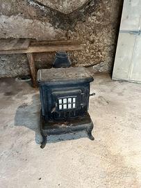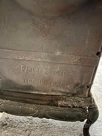 🔥 Stufa in ghisa vintage – Parlor Stove Stufa in ghisa dal carattere antico e dall'aspetto scenografico, perfetta per chi ama l'arredamento rustico, vintage o country. Costruita interamente in ghisa, presenta decorazioni in rilievo su tutti i lati, piedini sagomati eleganti e sportello frontale con griglia a vetro che lascia vedere la fiamma. Il piano superiore è dotato di due bocchette apribili, tipiche delle vecchie stufe da cucina, ideali per appoggiarvi pentole o bollitori. Il tubo di scarico fumi (canna fumaria) è presente e incluso. Lo stato d'uso riflette la sua storia: la patina e le tracce del tempo la rendono autentica e ricercata, perfetta così com'è per un'ambientazione d'epoca, oppure da restaurare per un utilizzo funzionale. ✅ Struttura integra ✅ Ghisa massiccia e robusta ✅ Stile Parlor Stove americano fine '800 ✅ Ideale come pezzo d'arredo o da restauro