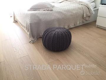 Parquet rovere prefinito, nostra produzione Made in Italy, misure 1500/2400x180-220x16mm, 4mm legno nobile, prima scelta tonalizzata, bisellato, spazzolato, finitura naturale vernice effetto grezzo opaca.