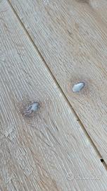 Ultima quantità di parquet in rovere preferito multistrato sbiancato e anticato sp. 15mm totali con 3,5mm di legno nobile. Con nodi come da foto. Ho solo 7 scatole da 2.12mq caduna per un totale di 14,84mq, ideale per una stanza o rivestimento di parete, Completo di collante per incollaggio. Misura delle tavole 19x186cm. Solo ritiro non spedisco.