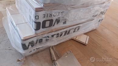 Parquet Woodco collezione Dream listoncino 70 (dimensione 420/700 x 70mm) spessore 10 mm di cui 3 mm di legno nobile rovere colore biscotto finitura spirit. Circa 22mq nuovissimo in confezione originale.