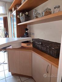 vendo per cambio cucina, una parte di cucina composta da 2 mobili contenitori bassi, una credenza, 3 mensole, un tavolo alto a forma di cuore. DA VEDERE assolutamente. urgentissimo