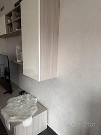 Vendo bellissima parete attrezzata per soggiorno, composta da moduli versatili e dal design contemporaneo. Il mobile è in ottime condizioni, ben tenuto e ideale per TV di grandi dimensioni.