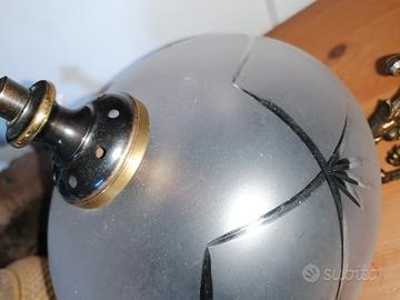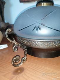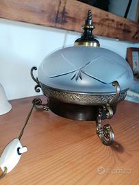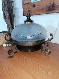 Lampada da tavolo anni 70 molto elegante, con plafoniera in vetro e base con inserti in ottone