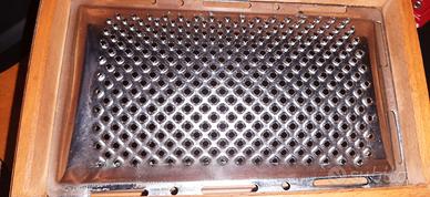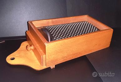 Particolare vecchia grattugia vintage in acciaio inox e legno -XX sec.