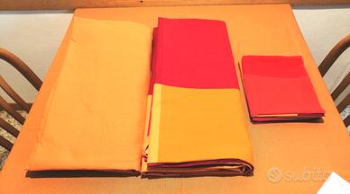 Bellissimo completo matrimoniale Ikea, mod. "Brunkrissla", 100 % cotone, vivace fantasia a grandi quadri sui toni del rosso/giallo/senape/bordeaux/fucsia, colori vivaci e resistenti al lavaggio, formato da: