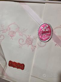 Vendo 5 parure di lenzuola matrimoniali ricamate e 1 tovaglia 12 posti.
