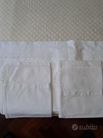 svendo due completi sopra, sotto e 2 fefere fatti a mano in puro cotone. Pizzi all'uncinetto. Mai usati 30 euro l'uno.