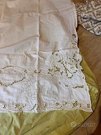 Parure matrimoniale in pizzo ritrovata nel baule della nonna , nuova solo rinfrescata, composta da lenzuolo sopra e 2 federe