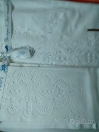 Meravigliosa Parure nuziale Vintage appartenente al corredo di mia nonna matrimoniale composta da lenzuolo sopra e due federe tutta finita a mano