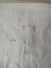 Parure letto matrimoniale Vintage composto da: lenzuolo sopra e due federe con ricamo floreale a mano