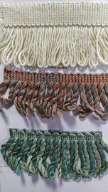 Passamaneria Frangia Cipollina Bordi Merletti per tappezzeria rivestimenti cuscini tendaggi tende. Diversi modelli e colorazioni.