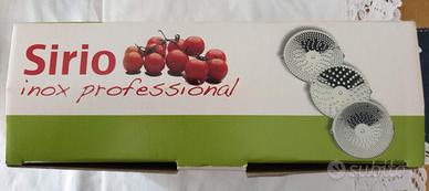 Passapomodoro in acciaio Inox, marca Sirio. Con 3 dischi di calibro diverso.