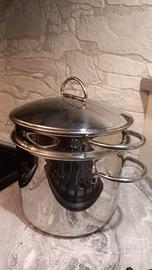 Oastauola/ soaghettiera compoetso da 3 pezzi,tegame in acciaio inox 18/10 marca "Le Cose" tenuto splendidamente usato pochissimo composto da:
