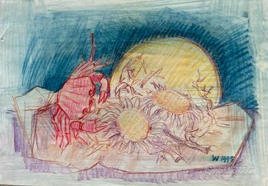 Pastelli a olio su carta cinese di Remo Wolf, misura 35 × 50 cm anni 90