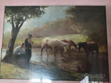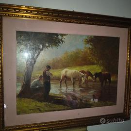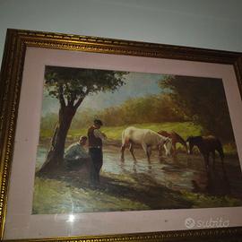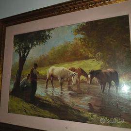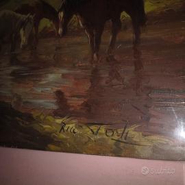 Olio su tela realizzato intorno al 1960/70 dal celebre artista triestino Riccardo Tosti (1910-1986): nei suoi dipinti rappresenta episodi di vita quotidiana. Conosciuto come il pittore del sole per via del suo saper creareeffetti luminosi mediante il contrasto tra le luci e le ombre. La sola tela misura cm.50; h. cm.70. Firmato in basso a destra (foto n°5). Durante la sua attività, oltre che in Italia, presentò mostre personali a Bruxelles, New York, Monaco di Baviera, Lugano, Oslo, Montecarlo, New York, ottenendo un grande successo sia di pubblico che di critica.