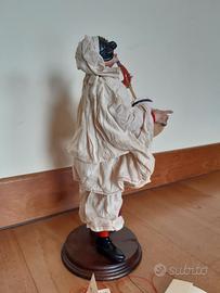 Pastore napoletano Pulcinella, con strumento musicale (putipù). In terracotta, con vestito in seta e base in legno, creato artigianalmente dalla ditta Giannotti, situata nel cuore di Napoli in via San Gregorio Armeno, una delle più antiche e apprezzate botteghe artigianali dell’arte presepiale dal 1815. Come cita il certificato di garanzia, "Si garantisce che questo prodotto in terracotta è stato modellato e dipinto a mano secondo i sistemi tradizionali della scuola napoletana. Eventuali imperfezioni denotano originalità dell'opera." Come cita il bigliettino, "Da sempre nel rispetto dell'arte e tradizione della terracotta napoletana realizzano oggetti d'arte in seta di S. Leucio, legno, cera e terracotta". Piccolo cornetto dorato appeso al collo. Base in legno scuro. Altezza, dalla testa del pastore alla base (base in legno compresa): circa 35 cm. Nuovo, ancora nella scatola originale, completo di certificato di garanzia e cartellino, come da foto. Purtroppo Subito mi permette di caricare solo sei foto. Altre foto disponibili su richiesta, non esitate a chiedere. Nel mio profilo è disponibile anche un altro Pulcinella, con un fiasco di vino.