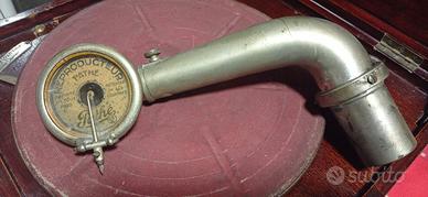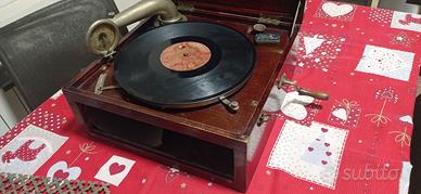 perfettamente funzionante, con dischi di cartone ed altri in vinile, campana interna (quindi periodo successivo al grammofono che ha campana esterna). me lo aveva chiesto anni fa un museo austriaco per esporlo qualche giorno, ma non ho accettato causa costi viaggio a mio carico.