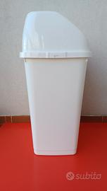 Pattumiera con coperchio basculante in polipropilene ad alta densità. Il coperchio basculante è utile come fermasacco. Contenitore stabile e di facile manutenzione. Dimensioni L44 - P33 - H68. Capacità 50Lt.