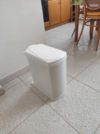 Dotata di coperchio basculante girevole, da utilizzare in armadietti di larghezza pari a 45 cm con anta battente a destra o sinistra. Composta da lamiera in acciaio di colore bianco ed elementi di plastica bianchi. Con secchi interni.