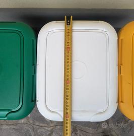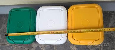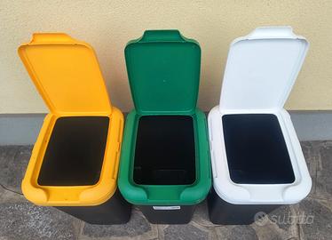 Pattumiera per la raccolta differenziata 3 scomparti - Capacità 75 lt totali, 25lt per scomparto, misura 76x32x48 cm - secchio per spazzatura con coperchi colore Bianco, Giallo e Verde, usato poco, come nuovo, pagato 32 euro, non spedisco
