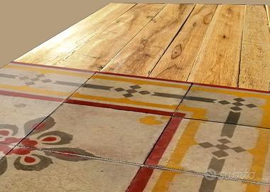 Siamo un' Azienda che fornisce materiali edili d'epoca. Nell'annuncio proponiamo nostri legni antichi accontati a cementine d'epoca.