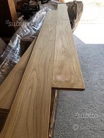 Vendita e produzione in Italia di Parquet pavimento in Teak prefinito composto da supporto di betulla fenolica e incollato sopra con colla vinilica a norma CE lamella superiore strato in legno nobile di TEAK di almeno 4 millimetri di legno nobile profilato maschio femmina pre finito già , pre levigato,verniciato oliato oppure da finire in posa
