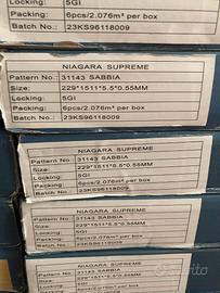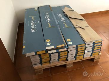 Vendo ottimo pavimento SPC della Castfloor Niagara Supreme tinta sabbia. Ottimo prodotto, caratterizzato da finiture di qualità, la struttura del decoro riproduce le naturali venature del legno. Il materassino da solo 1 mm è strutturato affinché venga ridotto al minimo anche il più insignificante rumore. La struttura completamente omogenea aderisce perfettamente alla superficie. La posa risulta veloce e precisa con sistema ad incastro click-lock, e semplice nel taglio anche con cutter o piccola flex. Dimensioni listello: 229 x 1511 mm. 30 Pacchi da 2.076 mq. cad. Totale mq. 62,28 Vendo in blocco: costo totale € 1.850,00 (30 € al mq.)!!! In negozio il costo va da 42 a 46 euro / mq. Per maggiori informazioni potete visitare il sito dell'azienda produttrice. Disponibile per la spedizione, costo puramente indicativo di € 200,00 è a carico del destinatario. I pavimenti in SPC sono la nuova evoluzione tecnologica dei pavimenti in PVC a incastro/click (o LVT). Grazie ad una nuova composizione lo strato centrale della doga diventa rigido, migliorando le caratteristiche del pavimento rispetto al classico PVC a click. Il vantaggio principale di un pavimento in SPC è l’eliminazione dei problemi di dilatazione causata dai cambi di temperatura: può quindi essere utilizzato anche su ampie superfici o davanti a vetrine o a grandi finestre; altro vantaggio è che l’SPC risente meno delle eventuali imperfezioni del sottofondo di posa.