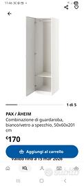 Pax Ikea con anta specchiata Aheim misure in foto. Ritiro zona Montesacro.