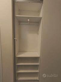 Vendo armadio modello Ikea Pax bianco: due ante scorrevoli, con accessori, usato. Dimensioni 150x40x236 cm. Vendo causa trasferimento a prezzo vantaggioso, da smontare, ritiro a vostro carico