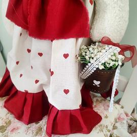 Deliziosa pecorella decorativa realizzata a mano. - Tessuto morbido e dettagli curati. - Vestitino a tema cuori rossi. - Fiocco rosso sul collo. - Orecchie morbide e dettagliate. - Base molto pesante rivestita in tessuto rosso. - Altezza: 45 cm #pasqua #pecorella #fattaamano #country #countrystyle #countrychic #shabby #shabbychic #cucitocreativo