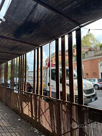 Vendo pedana in ferro arrugginito mt 16 x mt 1,40 con ringhiera a pezzi modulare ad X e base in legno come si vedo da foto prezzo da concordare no perditempo o affaristi