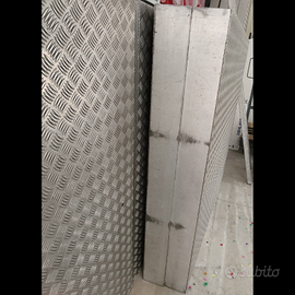 Vendo delle pedane rialzate di materiale alluminio rinforzato con bugnatura tipo "mandorlato". Le pedane sono quadrate e presentano le seguenti dimensioni: