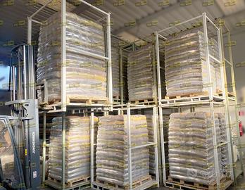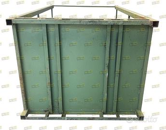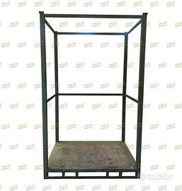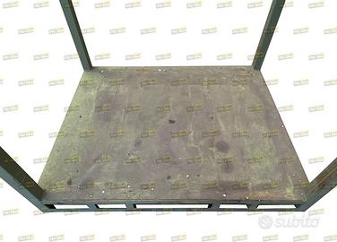 Pedane o strutture mobili sovrapponibili ad incastro in acciaio verniciato colore verde serie pesante. Hanno una duplice funzione: A) utilizzati come pallet da trasporto B) per la realizzazione di scaffalature da magazzino così da non dover ricaricare la merce. Sono utilizzati per lo stoccaggio e movimentazione di merce ingombrante. Hanno le slitte anti ribaltamento, sono costruiti con tubolare d’acciaio sezione quadra mm60x60, la base è in lamiera liscia con sottostruttura di rinforzo che funge anche da guida per le forche del carrello elevatore.