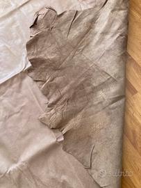 Pelle naturale di colore marrone/beige come in foto. Mai usata, naturalmente invecchiata. Dimensioni 115x115 cm, con bordi di carattere irregolare, in alcuni punti anche più lunghi dovuti alla normale sagomatura. Presente un piccolo foro dovuto ad errata lavorazione iniziale. Ritiro in zona Livorno o spedizione con spese a carico dell’acquirente.