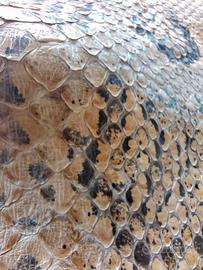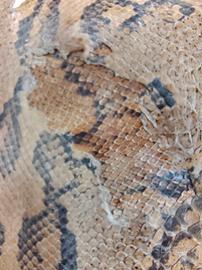 Pelle originale di Python reticulatus (pitone reticolato), risalente agli anni 1960/70 del Novecento. La pelle è rimasta sempre nella collezione privata del proprietario ed è stata conservata per decenni in ambiente asciutto. Lunghezza totale circa 230 cm (aperta). Larghezza massima circa 20 cm nella parte centrale. Pattern naturale ben visibile. La pelle presenta segni del tempo coerenti con l’età. Nella parte terminale della coda, che è la zona più fragile, è presente uno strappo. In quella stessa area è visibile anche una toppa interna applicata dal conciatore all’epoca, per rinforzare un punto delicato. La testa non è presente, come spesso accade nelle pelli conciate di questo periodo. Ideale per collezionisti, curiosità naturali, decorazione, studio o utilizzo artigianale. Venduta così come visibile in foto. Spedizione possibile, la pelle verrà arrotolata con cura e protetta.