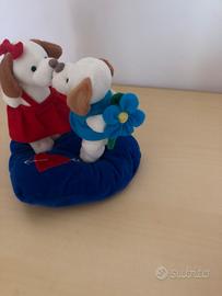 Cuore rosso con coppia di cagnolini che si baciano i musetti sono calamitati. Ideale x pasqua con l’uovo vicino o altro.