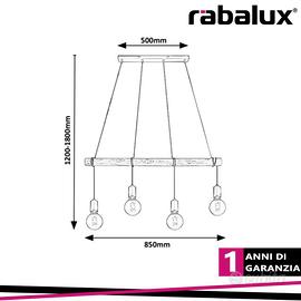 La sospensione a 4 lampadine Pablo in stile industriale sarà un pezzo caratteristico dell'arredamento del tuo soggiorno, cucina, sala da pranzo o camera da letto. Questo modello realizzato in metallo e legno è composto da un apparecchio nero opaco, una barra di supporto in legno e sorgenti luminose autoportanti. La lampada può essere fissata al soffitto con l'aiuto di una base decorativa allungata e quadrata. Le teste delle lampade sono appese alle estremità dei cavi di supporto che vengono avvolti su una spessa barra di supporto in legno. La loro distanza dal soffitto può essere regolata a piacere. Il faretto può essere utilizzato con quattro lampadine, ciascuna con una potenza fino a 40W. Il tipo di presa è E27. Se desideri migliorare l'atmosfera intima e intima, scegli le sorgenti luminose che emettono luce bianca calda per questa lampada. La larghezza della plafoniera a 4 lampadine Pablo è di 850 mm e la sua distanza dal soffitto può essere regolata tra 1.200 e 1.800 mm. Questo modello viene fornito senza sorgenti luminose.