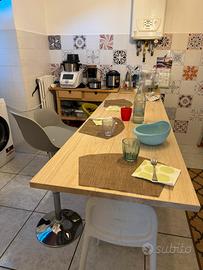 Vendo penisola creata con kallax e piano in legno insieme a 3 sedie ad altezza regolabile Disponibole volendo anche il mobiletto di fianco con 30€ in piu